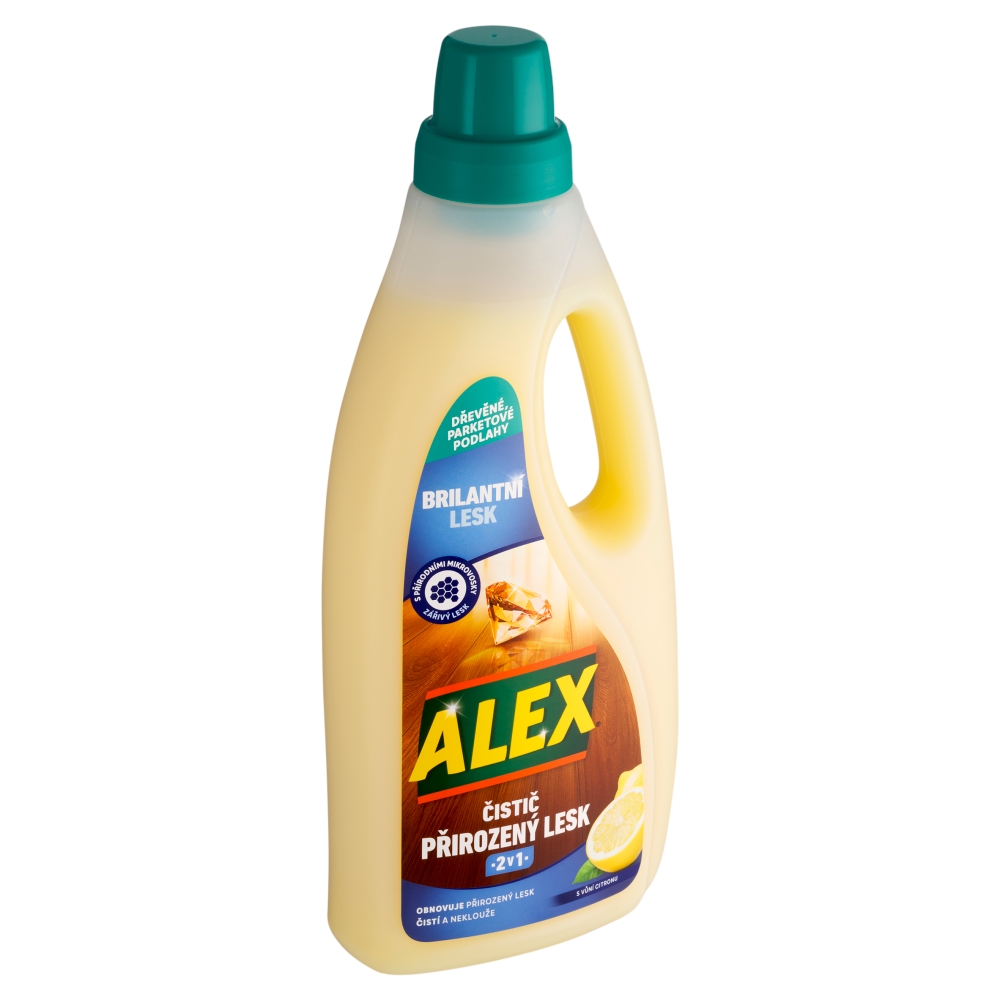 vypadala skvěle jako první den. Zanechává svěží pomerančovou vůni. Charakteristika Alex čistič na laminát: Laminátové plovoucí podlahy. S přírodními mikrovosky. Zářivý lesk. Brilantní lesk. Obnovuje lesk podlah. Čistí a neklouže. Extra lesk. Šetrný k povrchům. Ohleduplný k životnímu prostředí. Použití: Přidejte 4 plná víčka prostředku do kýble naplněného 5l vody. Mop před