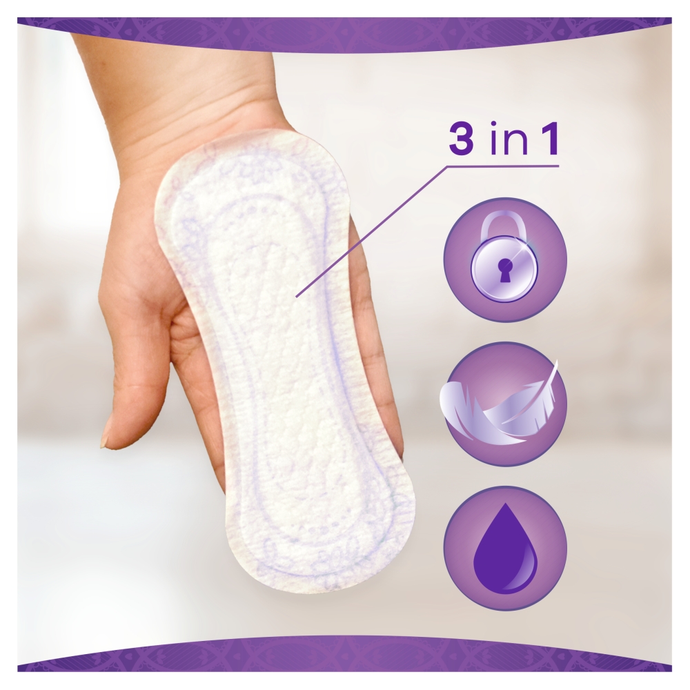 -dlouhé denní vložky pro dodatečnou ochranu-extrémně měkká povrchová vrstva-spolehlivá absorpce a boční ochranné zóny-poskytuje až 100% ochranu proti pachům-dermatologicky testováno a šetrné k pokožce