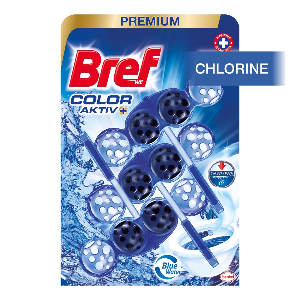 Moderní WC blok v podobě čtyř kuliček s atraktivním designem a 4 funkcemi. Košíček je dostatečně dlouhý a pokrývá větší část WC mísy.WC blok Bref Blue Aktiv představuje inovativní způsob údržby vaší toalety. WC blok je vybaven čtyřmi kuličkami, přičemž každá z nich má specifické složení pro dokonalý výsledek. Při každém spláchnutí bude vaše toaleta hygienicky čistá a svěží. Oceníte i atypický vzhled tohoto výrobku – je velký, má nestandardní tvar a ozvláštní toaletu zajímavým designem.1. dokonalá čistota mezi každým spláchnutím díky účinným látkám obsažených v modré vodě2. účinný proti vodnímu kameni3. dokonalá svěžest4. dokonalá hygiena
