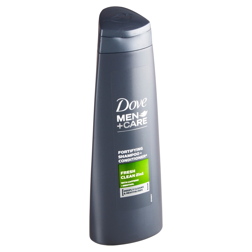 Vlasy důkladně umývá a zanechává je viditelně silnější a odolnější. Vlastnosti Dove Men+Care Fresh Clean šampon: Šampon s kondicionérem 2v1.