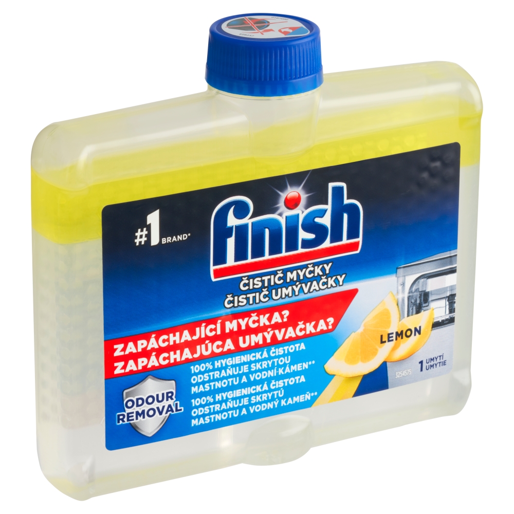 Hygienicky čistá myčka si hravě poradí i s opravdu silně mastným nádobím. O její čistotu ale musíme pečovat. Ve skrytých částech vaší myčky, jako jsou trubky, trysky a filtr, se totiž mohou usazovat nečistoty a vodní kámen, které vytvářejí nehygienické prostředí a často jsou zdrojem nepříjemného zápachu. O všechny tyto neduhy se postará tekutý čistič myčky Finish. Myčce dokáže navrátit její původní zářivý vzhled a spolehlivě zabránit usazování vodního kamene. Radost pro oko i vaše nádobí.