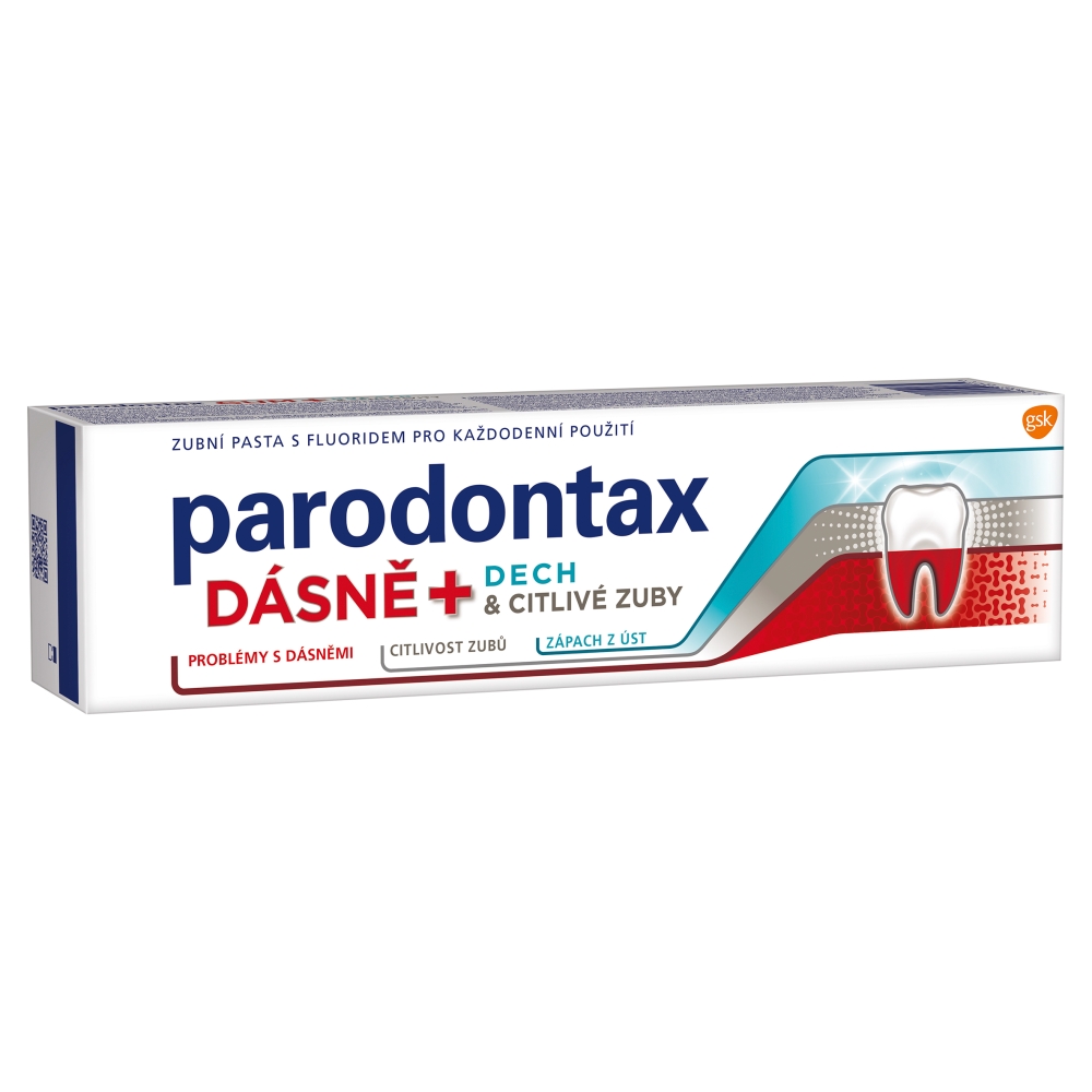 Parodontax dásně, dech a citlivé zuby nebojuje pouze s problémy dásněmi, ale zaměřuje se také na zápach z úst a na citlivost zubů, které mohou být vyvolané problémy s dásněmi.