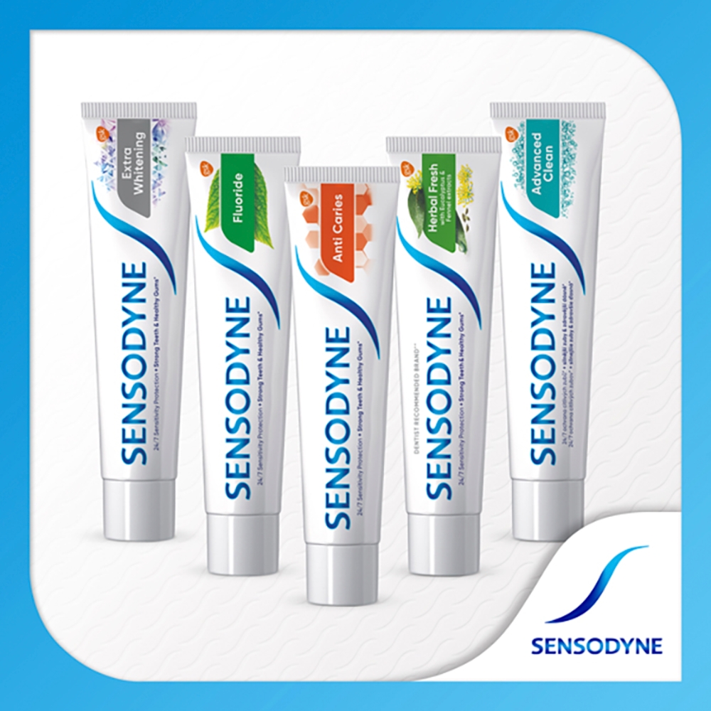 Zubní pasta Sensodyne Advanced Clean má speciální složení, které přináší úlevu od citlivosti zubů. Když se zubní sklovina opotřebuje nebo když ustoupí dásně, dojde k obnažení dentinu, který je pod nimi. To může vést k bolesti z citlivosti, například při konzumaci horkých a chladných nápojů.