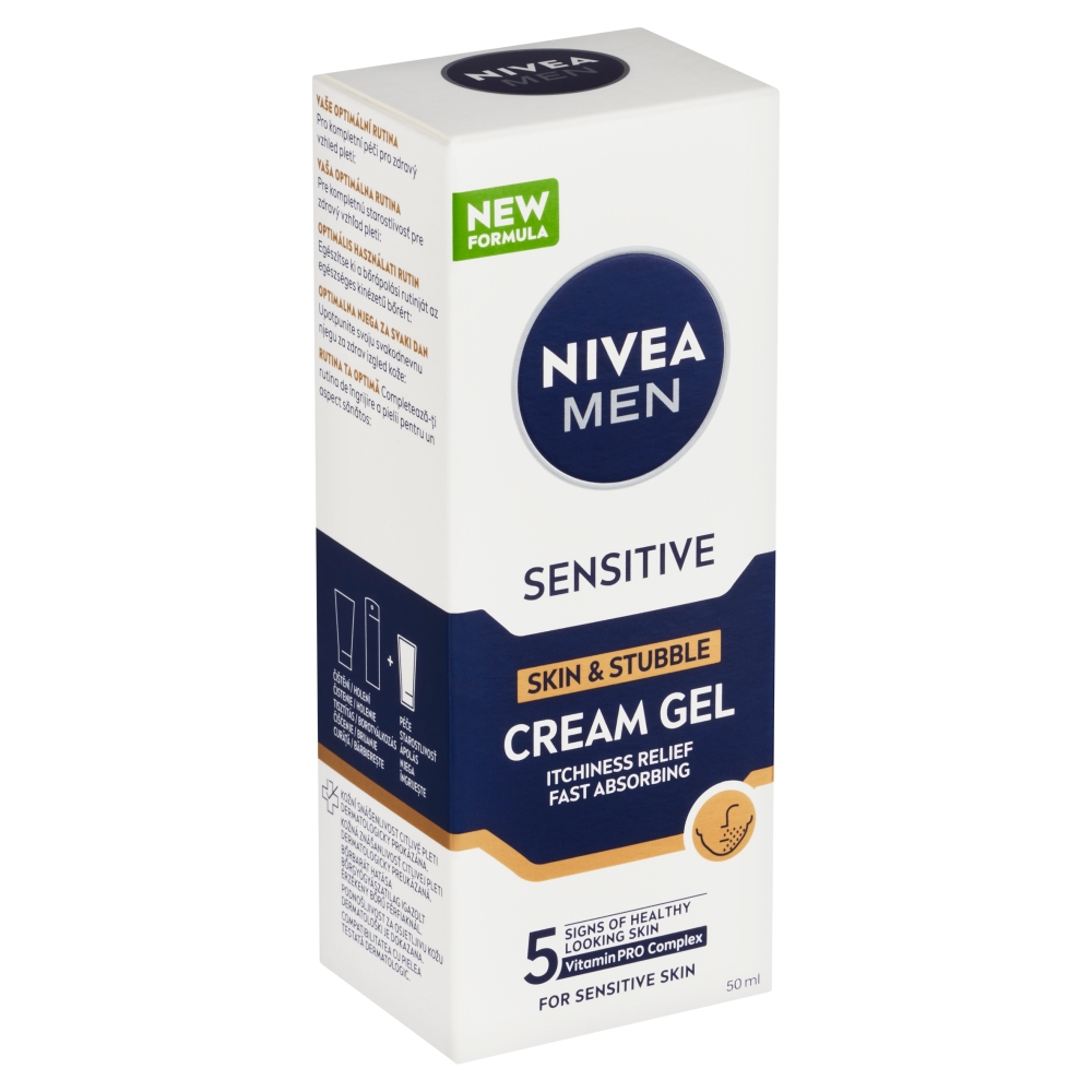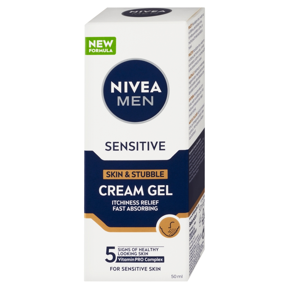 Nivea Men Sensitive krémový gel na citlivou pleť a strniště poskytuje okamžitou úlevu od podráždění, 24-hodinovou hydrataci složení s Vitamin PRO Complexem poskytuje pleti každodenní pohodlí, pleť je méně citlivá při pravidelném používání zanechává hladké strniště bez zbytků krému Nivea Men krémový gel na citlivou pleť a strniště Sensitive je to pravé, pokud vás trápí problémy s podrážděnou pokožkou. Jemný gel nabízí každodenní péči pro 5 příznaků zdravě vypadající pleti a strniště. Poskytuje okamžitou úlevu od podráždění, hydratuje pokožku na 24 hodin. Strniště zanechává hladké bez zbytků krému. Pokožka je při pravidelném používání méně citlivá. Nivea Men krémový gel pro citlivou pleť a strniště Sensitive – pro každodenní pohodlí mužské pleti.