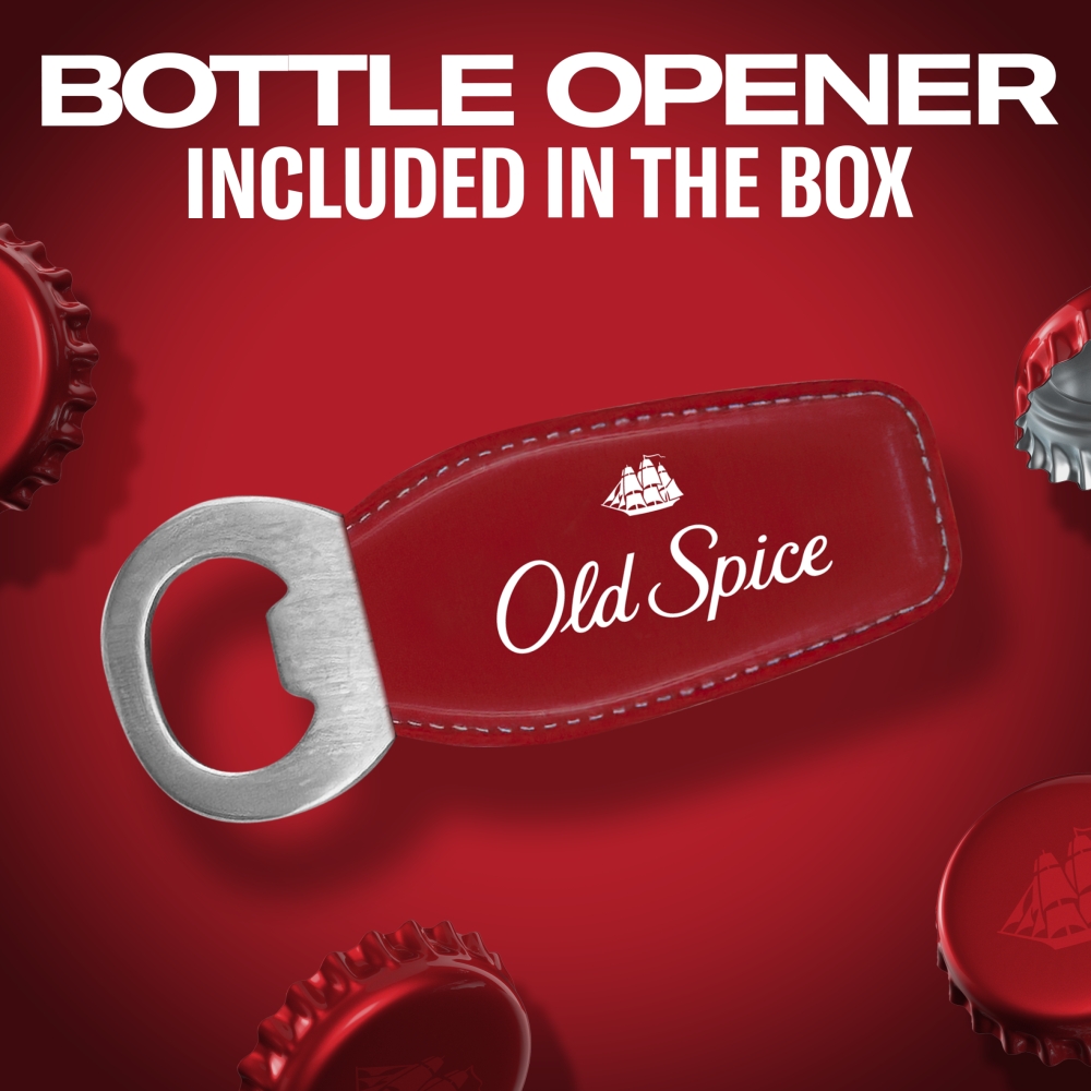 Dárková sada obsahuje tuhý deodorant 50 ml a sprchový gel Captain 250 ml plus otvírák na lahve Old Spice.