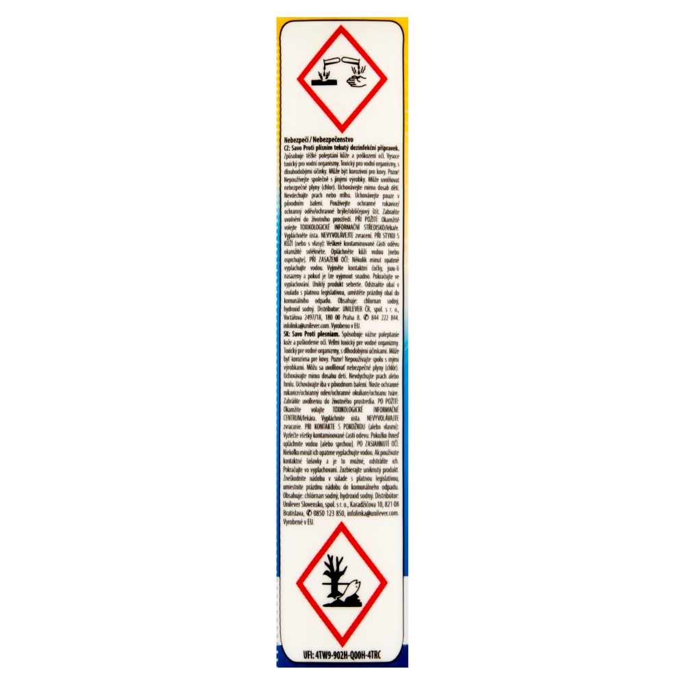 zaschnout. Složení Savo proti plísním: Účinná látka: chlornan sodný 47g/kg (4,7%), Další složení: Méně než 5%