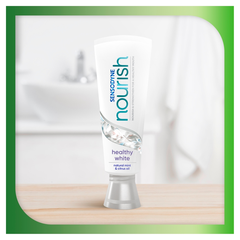 Sensodyne Nouris White je zubní pasta, která chrání sklovinu před každodenním působením kyselin. Zubní pasta speciálně vyvinutá pro citlivé zuby
