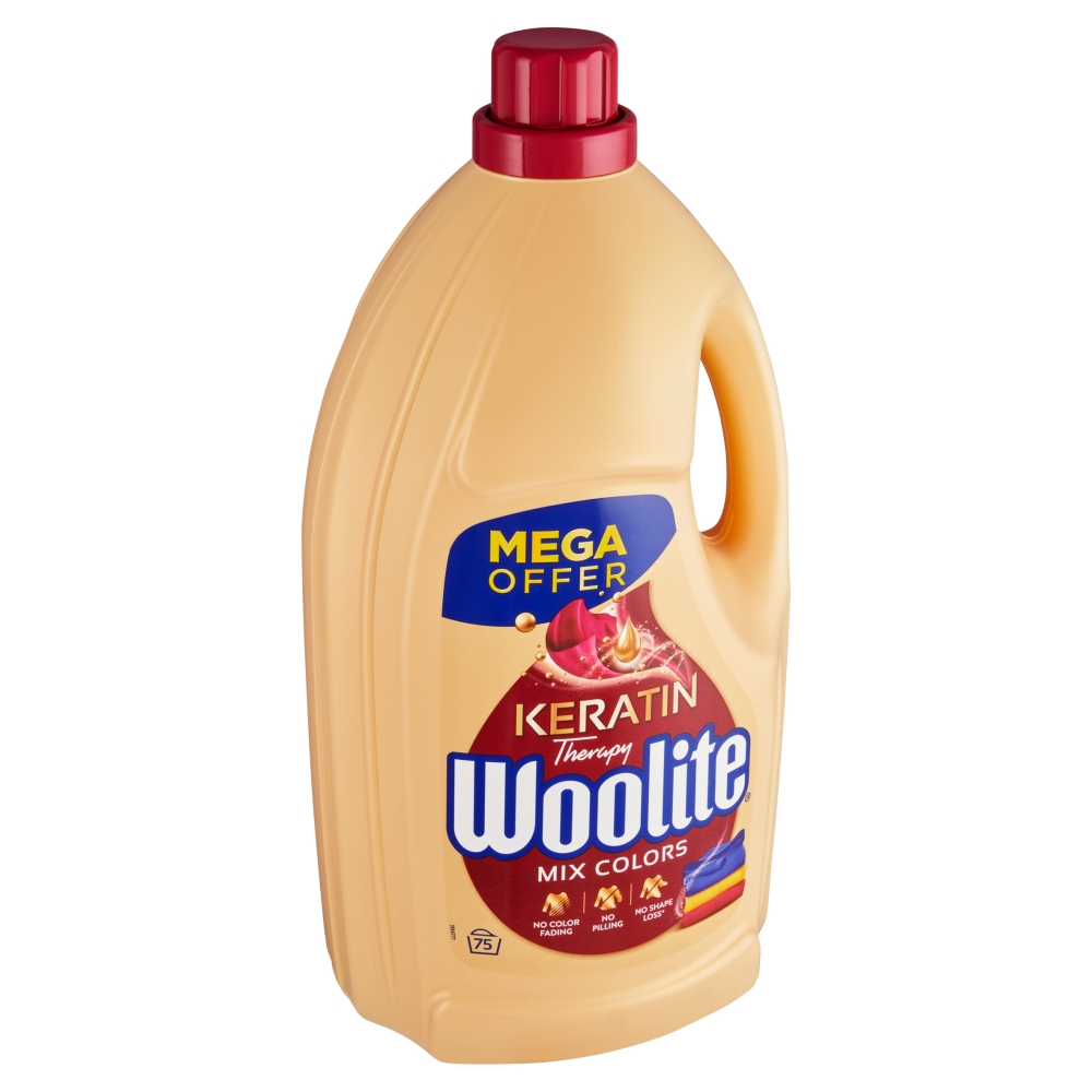 Woolite Mix Colors je speciální tekutý prací prostředek, který účinně pere a chrání barevné oblečení. Díky obsahu keratinu pomáhá chránit textiní vlákna, dodává jim jemnost a látku nemačká.